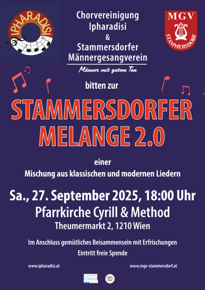 + 27.9.2025, 18 Uhr, C&M - Stammersdorfer Melange 2.0 - Gemeinschaftskonzert mit MGV Stammersdorf